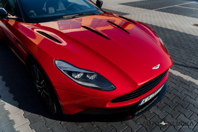 Najbardziej diametralną częścią usługi była częściowa zmiana koloru karoserii. Trudna i wyjątkowo wymagająca ze względu na kształt samochodu. Częściowa, bo samochód fabrycznie czarny, mial zostać zmieniony na czerwony metalic do lini szyb. W kolor idealnie dopasowany do palety Aston Martin.