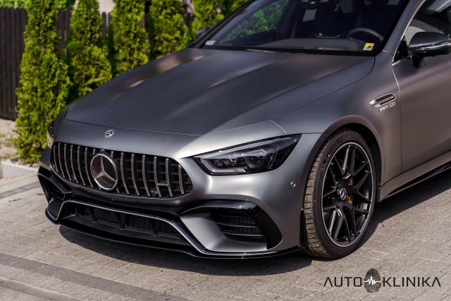 Prezentowany egzemplarz został skonfigurowany z lakierem fabrycznie matowym. Jak powszechnie wiadomo matowy lakier choć piękny i nietuzinkowy, ma swoje minusy. Kategorycznie nie wolno go polerować co oznacza, że najdrobniejsze ryski czy inne małe defekty muszą pozostać na zawsze lub do ponownego lakierowania. Z pomocą przychodzi najskuteczniejsza forma ochrony dostępna na rynku – pokrycie całości karoserii folią bezbarwną Xpel Stelth o właściwościach samoregeneracyjnych pod wpływem ciepła.