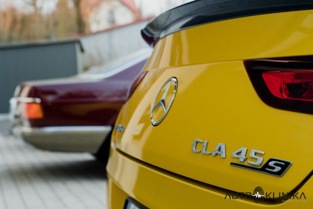 Pierwsza rzecz to grill z pionowym użebrowaniem, który zarezerwowany jest tylko dla najmocniejszych odmian AMG. Przedni zderzak został przeprojektowany. Szkoda tylko, że jeden z wlotów powietrza jest zaślepiony. Przetłoczenia na masce są zarezerwowane tylko dla odmiany CLA 45, do tego dochodzą szersze błotniki. Z tyłu pojawiły się cztery końcówki układu wydechowego, jednak tak naprawdę są to nadal dwie końcówki, kryjące się za czterema dziurami w zderzaku.
